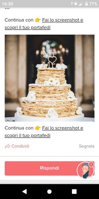 Pronti per il penultimo screenshot? 📲 Provate a lasciare al caso la scelta della vostra torta nuziale, magari vi capita proprio quella a cui stavate pensando o trovate l'ispirazione che stavate cercando!😍 Pronti? 3, 2, 1... click!👇🏻 Aggiungete lo...
