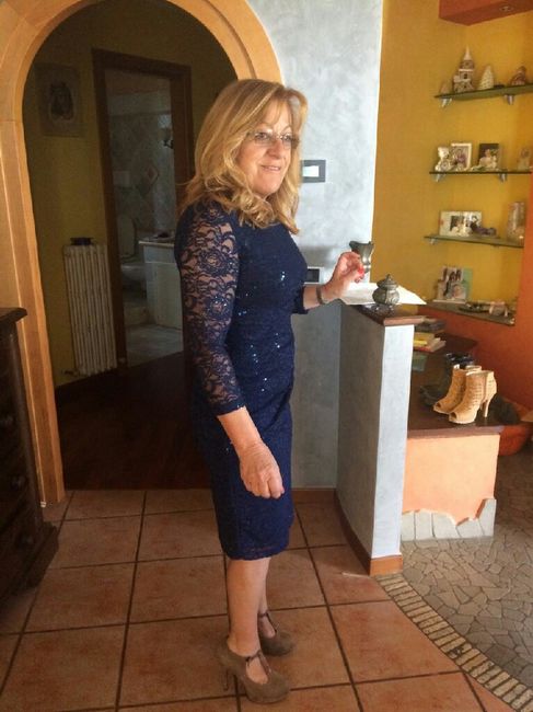 Ecco mia mamma...60 anni, 4 figlie...cosa ne pensate dell' abito????Il rito è civile e il tutto inizierà verso le 17:00..le scarpe sono state indossate solo per avere l idea con il tacco...meglio argento o nude per scarpe e coprispalle???