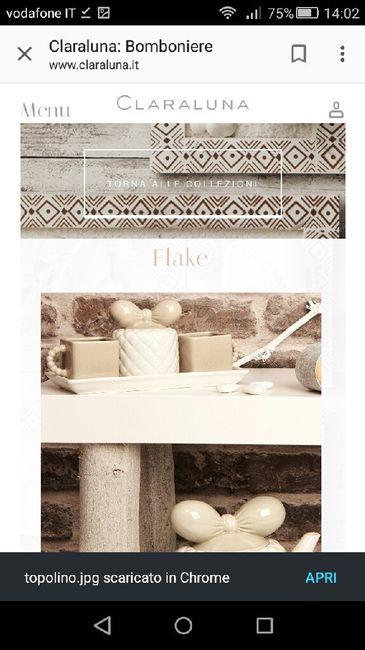 Salve ragazze oggi ho un grande dubbio..a seguito della scelta delle bomboniere mi è sorto wquesto dubbio.. le bomboniere sono Claraluna e danno in omaggio le partecipazioni.. potevo scegliere fra tre modelli ma queste sono quelle che mi sono...