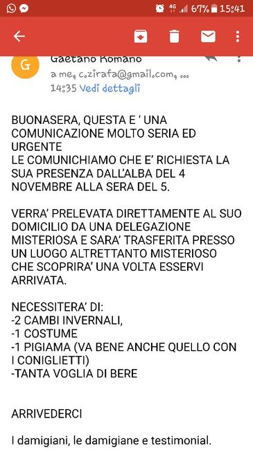 Ieri finalmente, dopo un mese e mezzo dall'ordine, sono andata a ritirare le fedi 😍😍😍 unoaerre 4g io e 3g fm, già fatte incidere e regalate dalla mia meravigliosa testimone ❤️❤️❤️ e ho anche ricevuto una mail piuttosto inquietante dal mio damigiano...