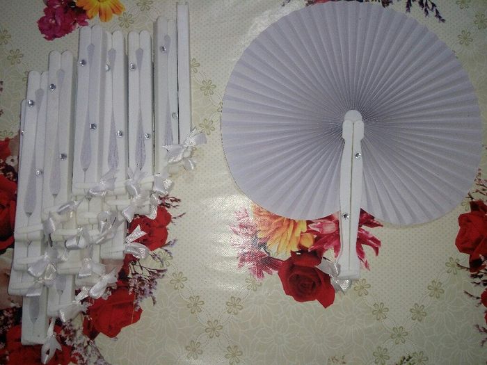 Salve sposine, vorrei mostrarvi i miei ventagli, decorati interamente da me ! Ho usato i medesimi strass e nastrino che ho impiegato per rifinire i nostri libretti messa.