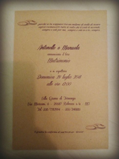 Ciao a tutte! Volevo condividere le partecipazioni che ho realizzato personalmente, ad un costo a mio parere davvero basso! Lo stile è il "country chic", il cartoncino interno e la busta sono in carta kraft color avana. Il pizzo di carta bianca sul...