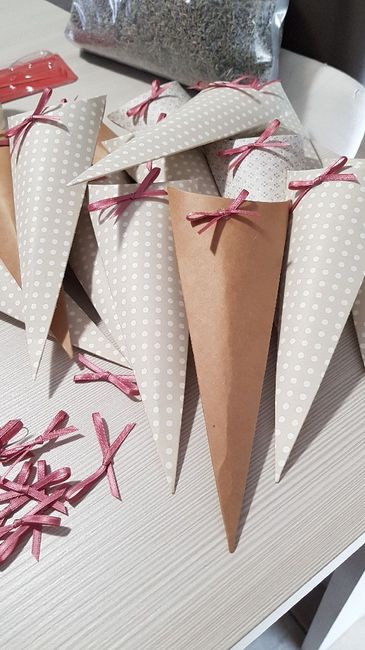 Continuano i lavoretti.... ormai mancano solo 9 giorni e mi diverto con le ultime cose.... questi sono i coni porta lavanda perché la villa non vuole il riso.... che ne dite? I pacchi sono per i testimoni e la cassetta è sempre un fai da te.... ...