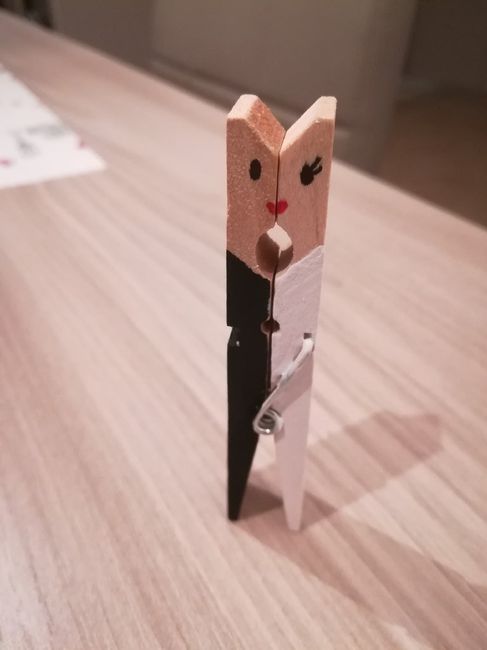 Ciao sposine..oggi ho realizzato il primo segnaposto di una lunga serie..dato che la mia location è di legno e il mio tema è il country chic ho deciso di fare i segnaposti con delle mollette di legno.. per fortuna mi sposo l'anno prossimo a settembre...