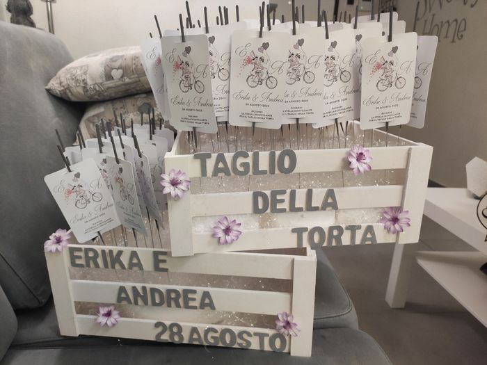 Mancano poco meno di due mesi e diciamo che il più è fatto. ho cercato di fare il più possibile tutto da sola, di alcune cose ho progettato la grafica e poi le ho fatto realizzare da artigiani,altre ho fatto tutto io. Cosa ne dite? partecipazioni...