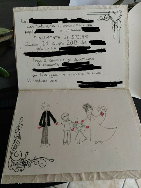 Ciao a tutte ragazze, abbiamo finito quasi tutte le partecipazioni ... Abbiamo preso il materiale al negozio equo solidale: sono buste fogli e cartoncini artigianali. Il disegno di noi 4 lo abbiamo fatto noi (le proporzioni sono abbastanza...