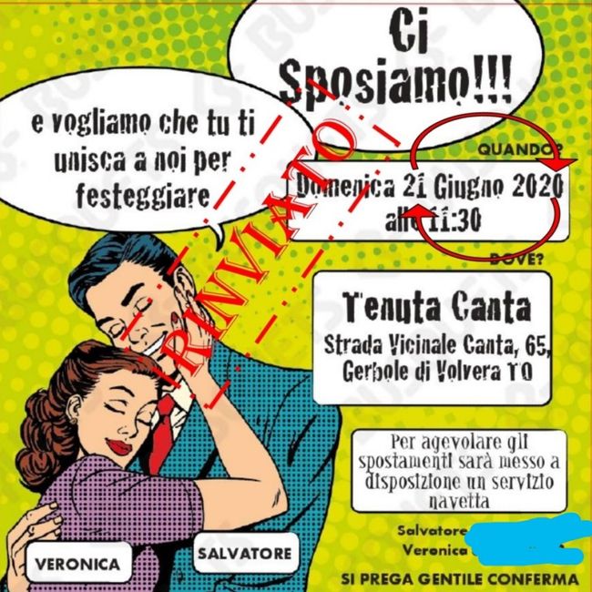 Sposini come avete annunciato ai vostri parenti che avete rinviato le nozze al prossimo anno o a distanza di mesi ?? Giorni fa intravidi un app che si creava una bella "save the date"personalizzata.. sapete darmi un consiglio ??