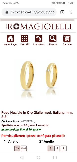 Buongiorno a tutte! Volevo chiedervi se (per chi le ha provate) c'è una grossa differenza ESTETICA (non l'intero perché lo so) tra : - questa fede Comoda mm 3, 5 - la Comoda 4 mm - l'italiana mm 3,8 P. S. Mi sembra che la Comoda 3,5 sia abbastanza...