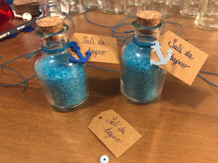 Ciao spose! Finalmente ho finito di comporre le mie bomboniere tema mare! Ho deciso di fare delle bottigliette con dei sali da bagno turchesi che hanno un profumo meraviglioso! La proprietaria della location mi ha detto che le metterà su un tavolo...
