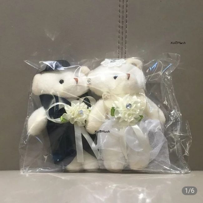 Stamattina on line ho acquistato il fiocco auto intonato ai colori del matrimonio e questi orsetti che adoro...ma dove potrei metterli? Sul tavolo sposi? Datemi un idea🙂