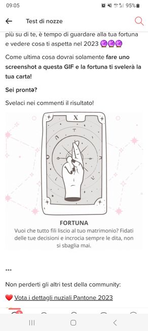 Ora che hai risposto a tutte le domande e so di più su di te, è tempo di guardare alla tua fortuna e vedere cosa ti aspetta nel 2023 🔮🔮🔮 Come ultima cosa dovrai solamente fare uno screenshot a questa GIF e la fortuna ti svelerà la tua carta! Sei...