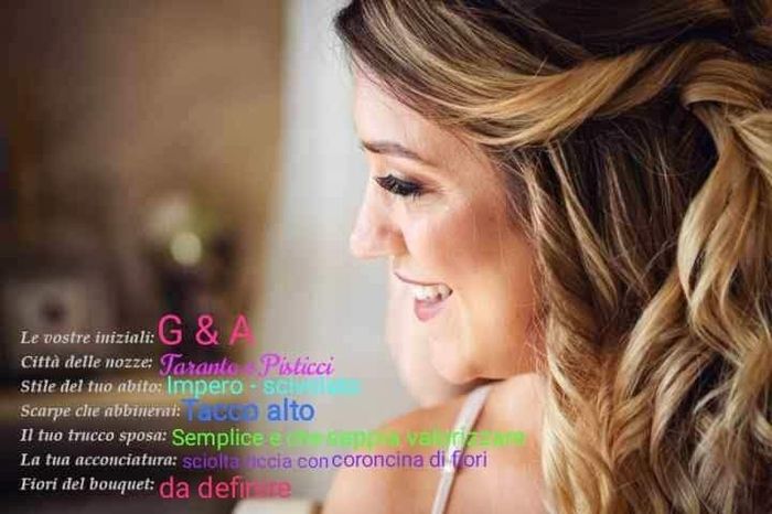 Sposine! Siamo arrivate al momento di tirare le somme! Avete risposto a tutte le domande dell'identikit sposa? Potete scaricare questa foto, compilarla e inserirla come commento nel topic! 👇 Sono curiosa di vedere le vostre risposte! © Davide...