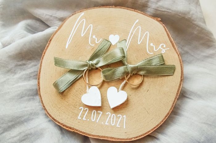 Buonasera ragazze, come state??? Ho provato a fare da sola il portafedi Il classico cuscino non mi piace e avendo in casa questo tronchetto di legno e ancora qualche cuoricino decorativo ho provato a combinarci qualcosa. Che ne dite?? Meglio...
