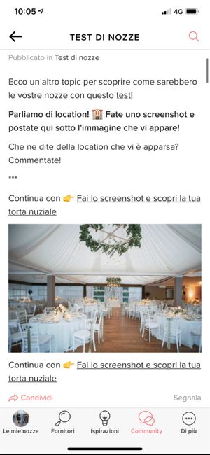 Ecco un altro topic per scoprire come sarebbero le vostre nozze con questo test! Parliamo di location! 🏨 Fate uno screenshot e postate qui sotto l'immagine che vi appare! Che ne dite della location che vi è apparsa? Commentate! *** Continua con 👉...