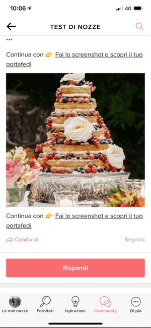 Ultimo screenshot per scoprire un'altro dettaglio importante delle vostre nozze! Siete pronti? Vediamo quale sarà il vostro portafedi, mettete la schermata nei commenti! 📸 *** Se vi è piaciuto questo test non perdetevi gli altri: ❤️ 4 abiti e 1...