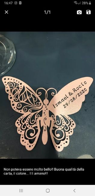 Salve ragazze, ho bisogno di un vostro consiglio come segnaposto ho scelto quello in foto, i tavoli se posso li faccio a 4 max a 5 se sono 2 famiglie vorrei mettere solo 2 farfalle con i rispettivi cognomi voi che dite? Mi consigliate di scrivere a...