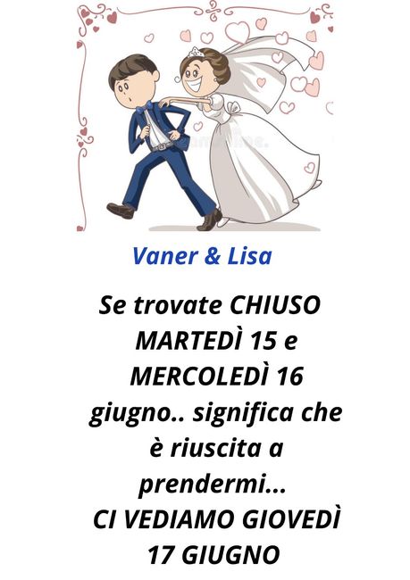 Dovevamo avvisare la nostra clientela che siam chiusi perché ci sposiamo 😅🤣❤️
