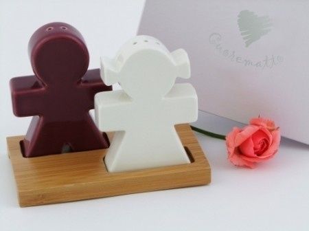 ciao care sposine Abbiamo scelto le bomboniere per il nostro grande giorno e anche i pensierini per chi ci raggiungerà solo al taglio della torta! che ne pensate? sono della linea cuorematto, sono dei sale e pepe e rappresentano una coppia di...