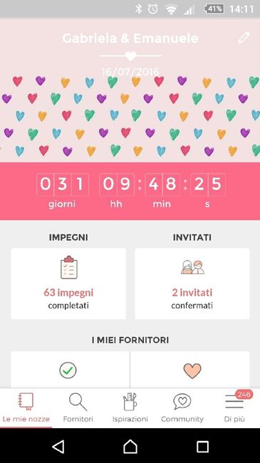 Buongiorno principesse, siete al settimo cielo, non è vero? Ormai contate i giorni e le ore che mancano al grande giorno! Condividiamo in questo topic tutti gli screenshoot del countdown di matrimonio.com! Quanti giorni mancano al...