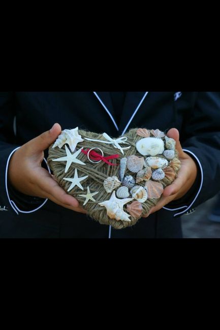 L'idea della base del cuore fatto di spago l'ho presa da una ragazza che aveva postato la foto...ora non ricordo il nome!!! Le conchiglie le ho attaccate con la colla a caldo,e oltre al fiocchetto avorio ho messo il fucsia dato che come colore ci...