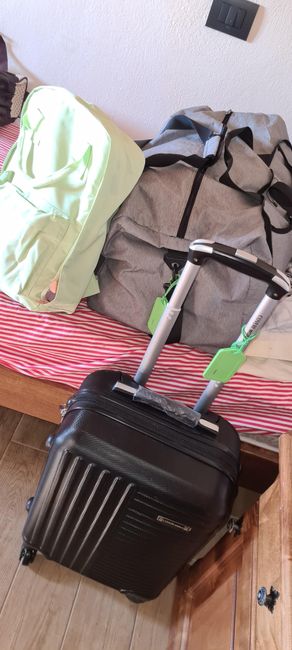Praticamente ho fatto un trolley piccolo per me un borsone da palestra grande per lei visto che qua chiedono cambi lenzuoli Pannolini e anche Assorbenti per me e sono cose ingombranti e infine uno zainetto con i miei trucchi caricabatterie ecc......