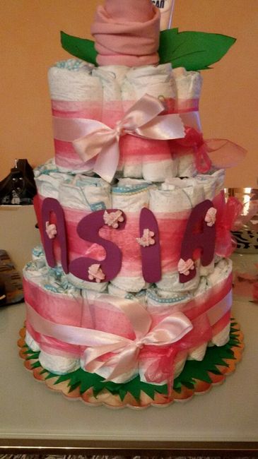 Appena finito la torta di pannolini per mia cognata!!!vi piace??è la prima che ho relizzato!e un pensiero per un'amica neomamma!!