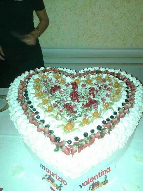 L'unica cosa di cui siamo sempre stati convinti che non vogliamo la torta finta al nostro matrimonio anche se eran comprese nel prezzo... noi vogliamo una torta gigante a forma di cuore x 100persone e penso che l'effetto sará cmq bellissimo!!! Unica...