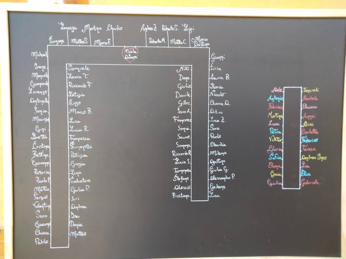 Ho modificato un po' il tableau sulla lavagna che avevo postato ieri... Che dite? Le misure della foto non rendono...i nomi si leggono molto bene, la lavagna è bella grande☺️Ci sposiamo domani ♥️