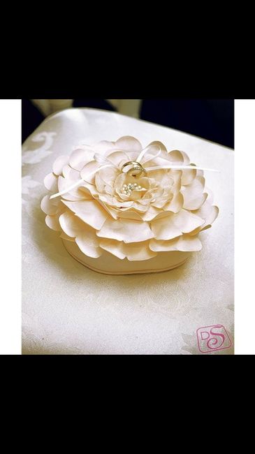 Ciao ragazze, oggi ho provato a ricreare un cuscino porta fedi visto su internet. Questa è una bozza, i petali sono sporchi e non omogenei inoltre sotto ci dovrei mettere un nastro alto per coprire la scatola che fa da base... Ma intanto c'è l'idea....