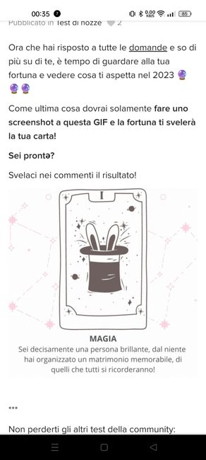 Ora che hai risposto a tutte le domande e so di più su di te, è tempo di guardare alla tua fortuna e vedere cosa ti aspetta nel 2023 🔮🔮🔮 Come ultima cosa dovrai solamente fare uno screenshot a questa GIF e la fortuna ti svelerà la tua carta! Sei...