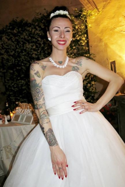 Buonaseraaaaaaa piccola curiosità, quante di voi sono tatuate e se si come rispondere a quelle persone che vorrebbero farvi coprire i tatuaggi nel vostro giorno più bello?!.... io personalmente ne ho 6 e a nasconderli non ci penso neanche. ... voi...