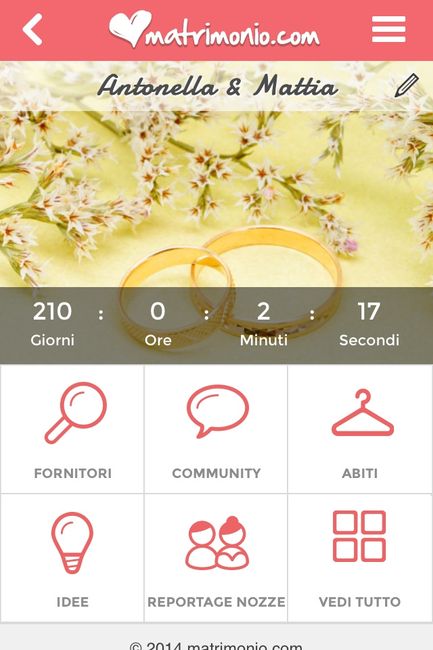 Buongiorno ragazze, buon lunedì! Una nuova settimana è appena iniziata e il countdown della app di matrimonio.com segna meno giorni al matrimonio. Ma a voi quanto manca? Scaricate la app di matrimonio.com: iPhone App Android App...