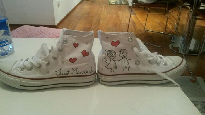 Nel senso prima di buttar via un paio di scarpe... questa è la bozza a matita per il mio ricambio, cosa ne pensate? Prima di passare al pennarello... in una c'è il disegno mentre nell'altra c'è scritto just married, il disegno sarà fatto dal solo...