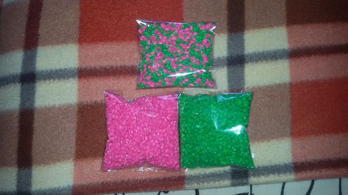 Ragazze ho colorato un pò di riso dei colori che abbiamo scelto per il matrimonio:fucsia e verde smeraldo! Volevo vedere che effetto fa, ma non so decidermi se mettere nei coni con il fiocco verde il riso fucsia e viceversa oppure mischiare il riso...