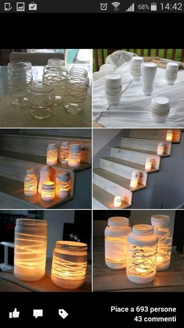 Buongiorno a tutte! Io mi sposo nel 2015 e vorrei creare come decorazioni sul tavolo della sala ricevimenti delle candele fai da te con i barattoli di vetro. Cosa posso attaccarci come tessuto secondo voi?! il mio abito non è in pizzo quindi vorrei...