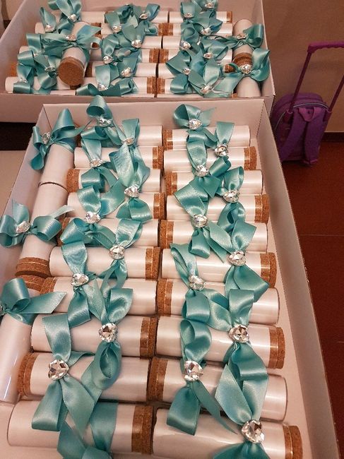 Eccole qui finalmente le ho ritirate stasera. Abbiamo fatto cambiare il nastro con questo di raso ed è molto meglio. Cambiato anche il cuore...non vedo l'ora di consegnarle. Voi come vi organizzate per gli amici? Tutti insieme o separati?