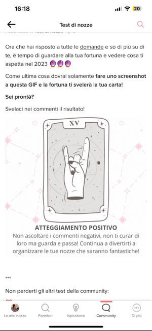 Ora che hai risposto a tutte le domande e so di più su di te, è tempo di guardare alla tua fortuna e vedere cosa ti aspetta nel 2023 🔮🔮🔮 Come ultima cosa dovrai solamente fare uno screenshot a questa GIF e la fortuna ti svelerà la tua carta! Sei...