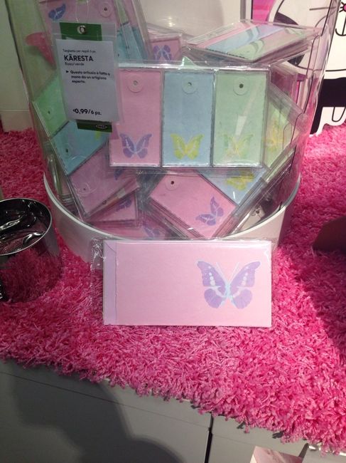 Per quelle tra voi che hanno scelto il tema farfalle segnalo che due giorni fa all'ikea ho trovato questi cartoncini/cartellini a tema primavera con farfalle e colori pastello che potrebbero essere utili per tante cose: tableau, segnatavolo,...