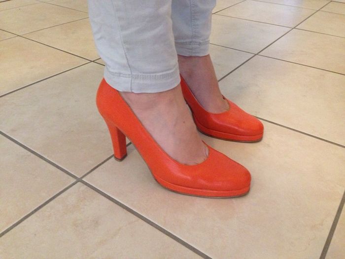 Ritirate oggi!!!! Le ho dovute far fare perché arancioni e così erano introvabili... Cosa ne pensate??? Sono esattamente come le volevo!! Spero solo di riuscire a tenerle tutta la sera!