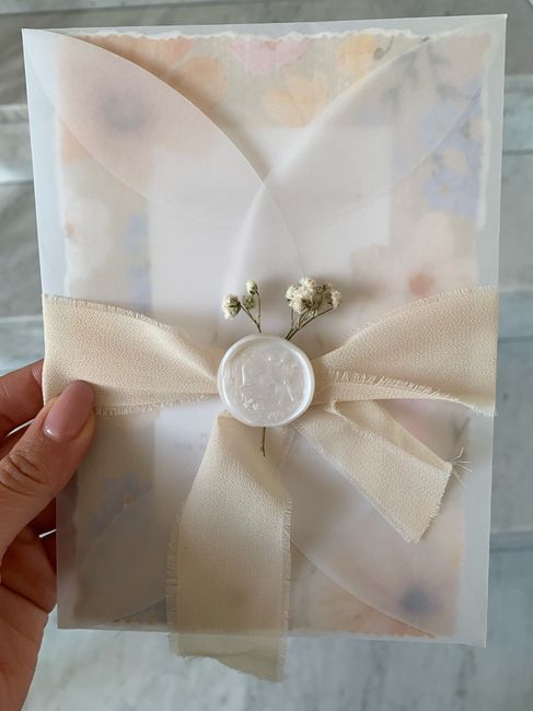 Ragazze buonasera, partecipazioni fatte da me. Sono stata dal tipografo e avevo scaricato la fantasia su canva ( nella seconda foto c è da considerare che il fiocco non è fatto bene e che ci va un fiorellino e c’era lacca) cosa pensate?