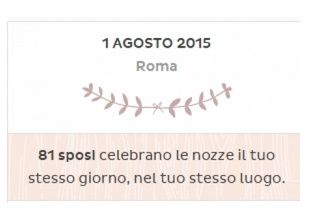 qui sul forum a destra compare una finestra..dove vi dice quante persone celebrano le nozze il tuo stesso giorno, nel tuo stesso luogo.forza vediamo un pò quale è la data più gettonata dalle mie parti sono 56 le coppie che si sposano...e dalla...