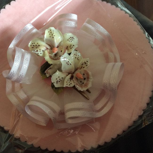 buondì mie care sposine, stamani sono arrivate pure le mie bomboniere ordinate anche queste on-Line, Ho optato per la torta-bomboniera con una rosa in ceramica come inserto su ogni fetta, ora apro il pacco e controllo che tutto sia integro,più tardi...