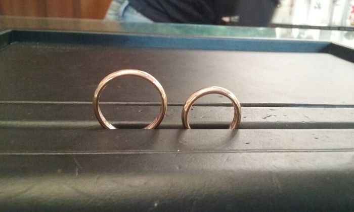 Ragazze ecco le mie fedi 5mm 1ar...le.trovo bellissime e anche se non si vede ce l incisione....È stato emozionante provarle...ovviamente rimangono in gioielleria è Troppo presto per prenderle. Tutto mooooolto realeee