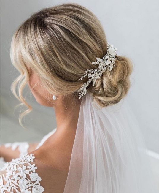 Buongiorno a tutte, ho acquistato per il mio abito un velo lungo ma mi piacerebbe comunque mantenere come acconciatura uno chignon basso e spettinato.. secondo voi, il velo sistemato come in foto regge? 🤔