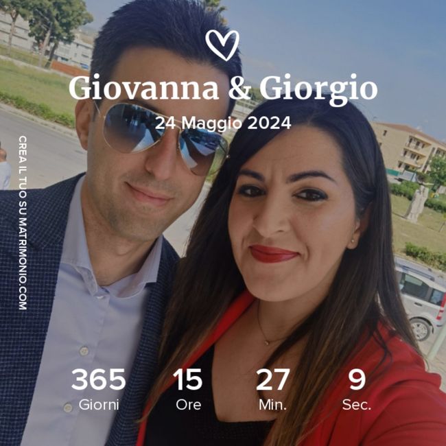 1071 giorni faAd oggi manca esattamente un anno al 24.05.24, nostra data di matrimonio!! Siamo ancora in alto mare con i preparativi... abbiamo solo visto una location finora e stasera abbiamo l'incontro con il fotografo per farci fare il preventivo!! Chi come noi...