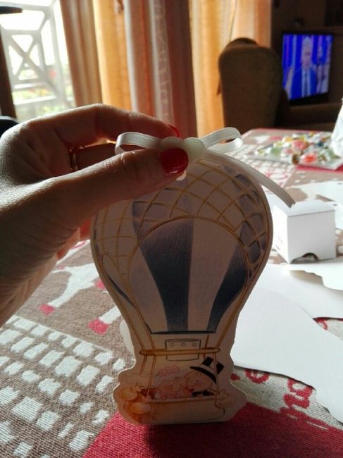 Ragazze vi posto la foto dei miei segnaposto...che ne pensate? Siate sincere! Vi premetto che il mio tema è viaggio e i miei colori panna e verde. Le valigie sono per gli adulti e le mongolfiere (con dentro gelatine alla frutta) x i bambini.