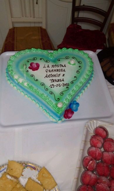 Buongiorno a tutti ....oggi ho bisogno di voi...noi faremo la promessa di matrimonio martedì ...e faremo una piccola torta XK il giorno prima sarà il mio compleanno... mi date suggerimenti su cosa potrei scrivere sulla torta? Grazieeeee vi abbraccio...