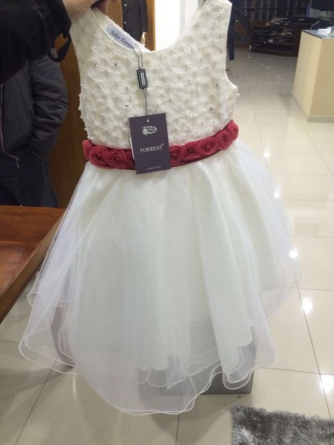 Eccolo!!!Il vestito per le mie 2 damigelle!!!Ieri siamo andati a misurarlo!!!La cintura sarà il colore del tema(non rossa),dalla foto non si vede,ma il tulle della gonna è tempestato di brillantini!!!Adesso manca solo il paggetto,ma io non potrò...