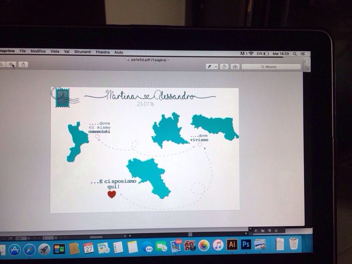 Che cosa ne pensate delle partecipazioni che mia sorella mi ha disegnato? A me piacciono molto. Il colore del mio matrimonio è il tiffany.