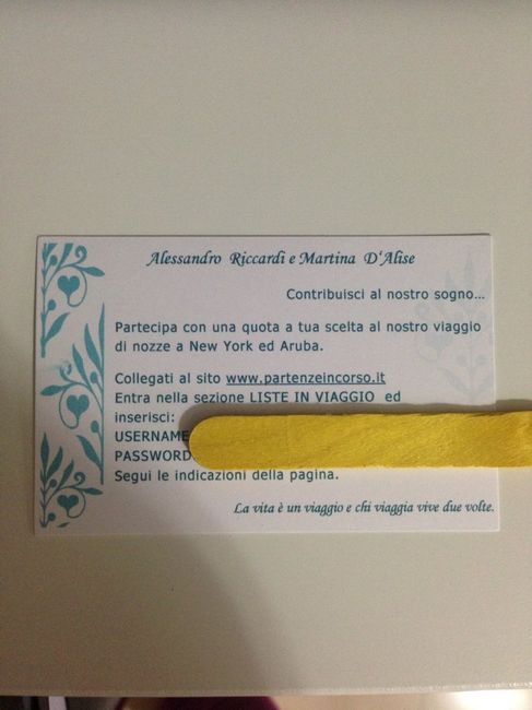 Ciao ragazze! Presa dal fai da te al pc in questi giorni ho creato dei biglietti per spiegare a chi vorrà contribuire al viaggio di nozze le modalità per farlo. Che ne dite? Vi piace come idea?